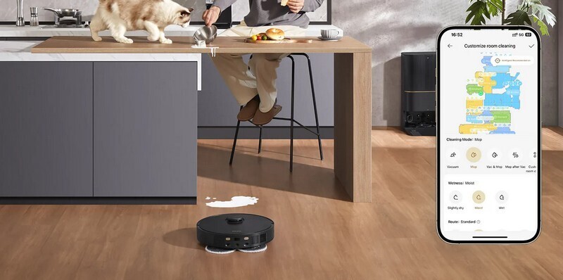 Забудьте о необходимости постоянно следить за пылесосом! Док-станция с двумя резервуарами сама наполняет бак робота чистой водой. Салфетки всегда влажные и готовы к идеальной уборке — без хлопот с вашей стороны.