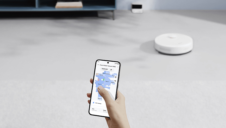 С Xiaomi Robot Vacuum S40C уборка становится максимально удобной. Через мобильное приложение вы можете выбирать комнаты или зоны для очистки, устанавливать виртуальные стены и контролировать весь процесс в реальном времени. Теперь управлять уборкой можно даже находясь вне дома.