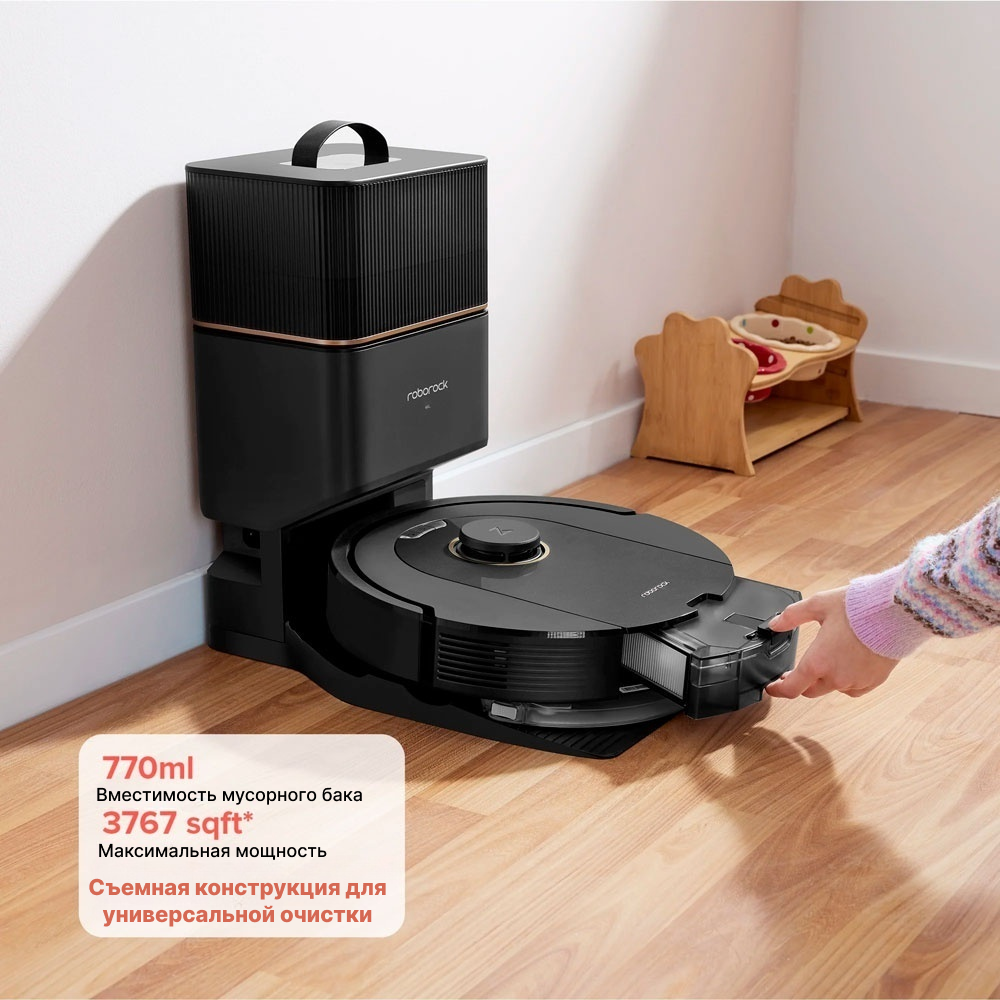 Объёмный пылесборник на 770 мл позволяет реже опустошать контейнер, даже если в доме есть животные. А со станцией самоочистки робот сам избавляется от накопленного мусора — вам остаётся только наслаждаться чистотой.
